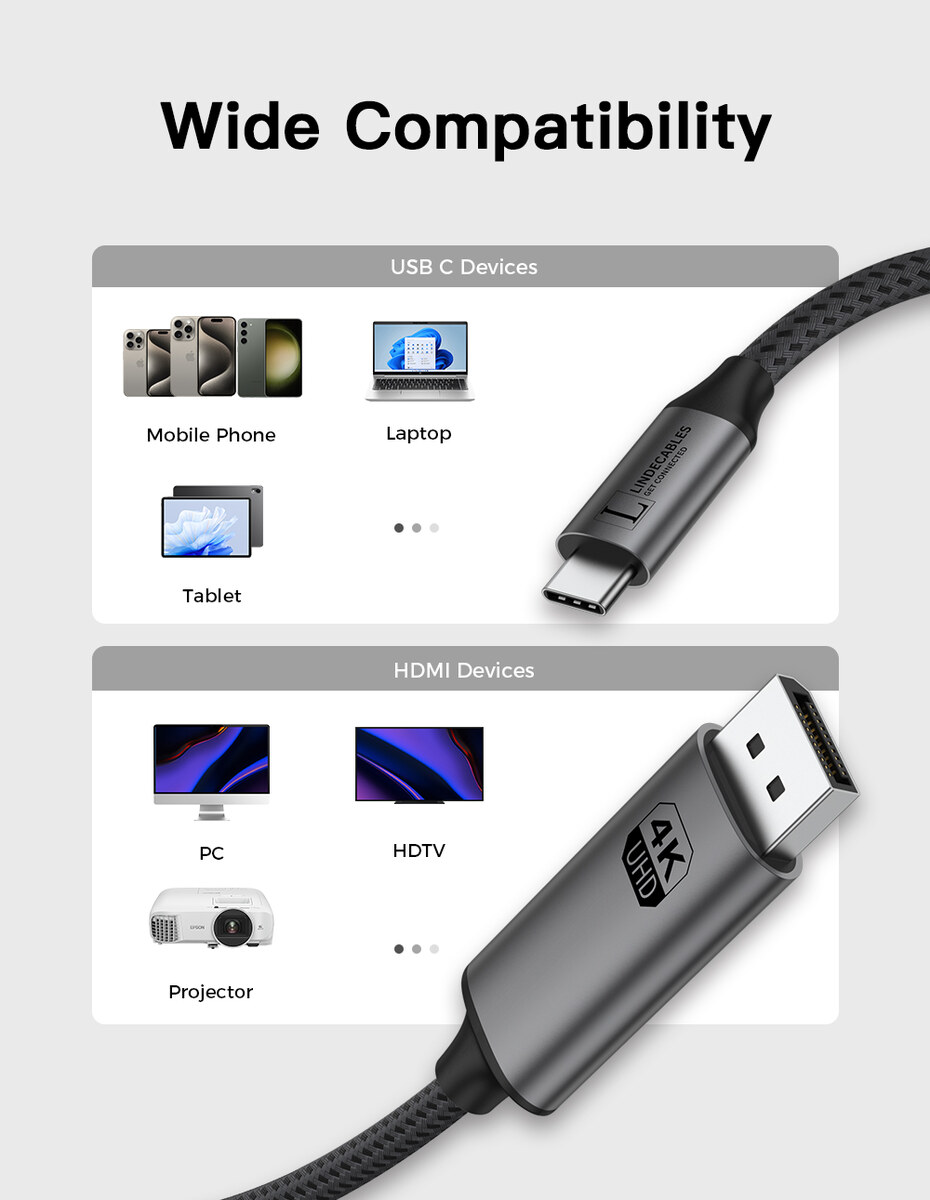 LindeCables USB-C 3.1 til DisplayPort 4K 60Hz Premium Kabel - 3 m
